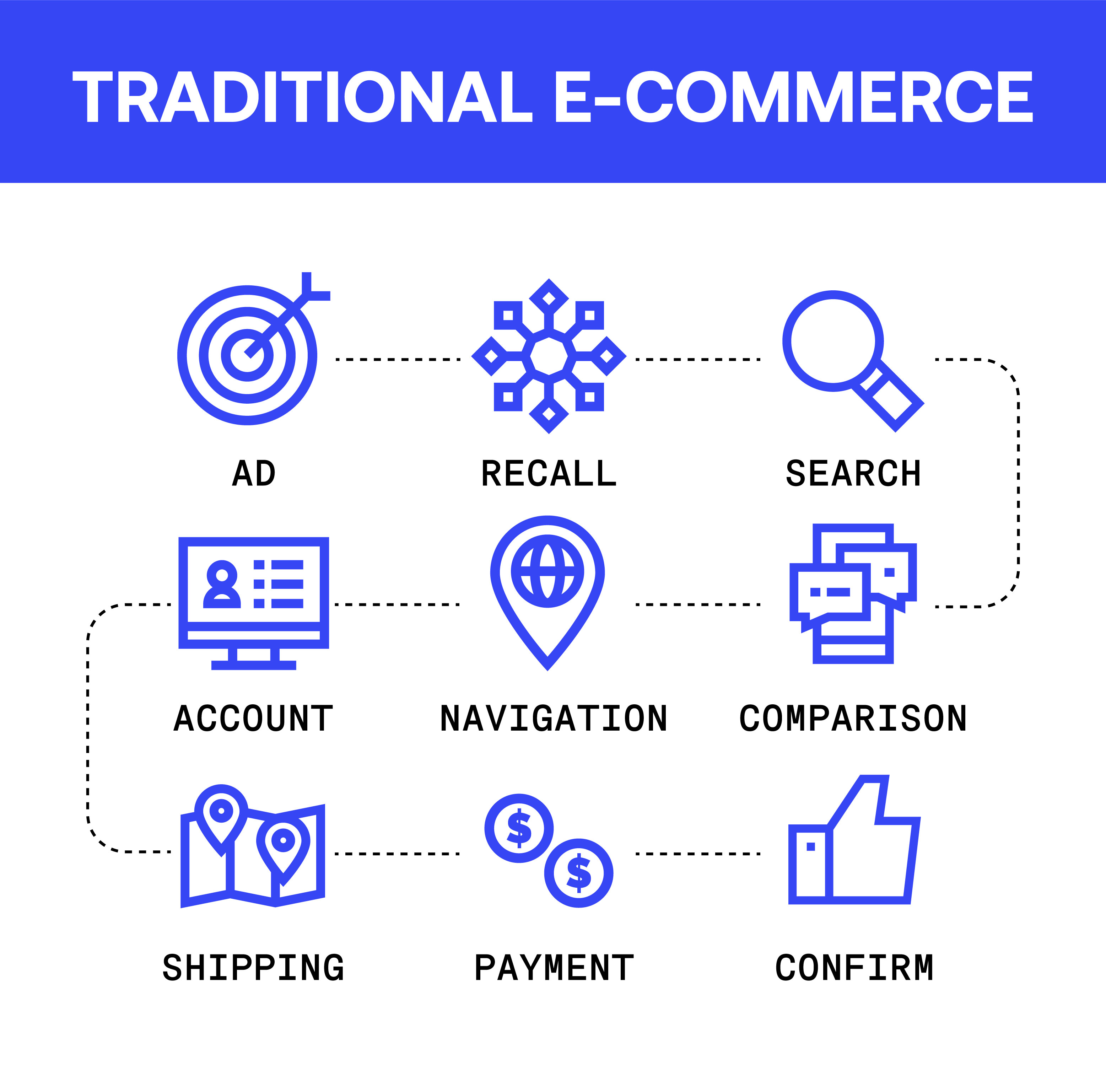 Compare this to traditional e-commerce, which moves through multiple steps: